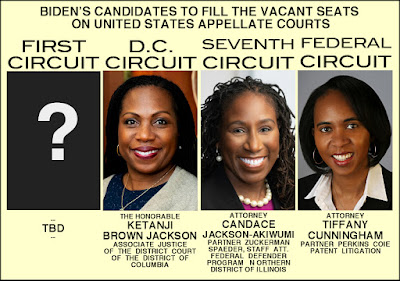 Then Biden announced his first 11 nominations to the Federal Judiciary including 3 at the Appeals Court level. Well, I didn't pick a winner. But I did get this much right. All women of color--yes! And I still might get one right, because Biden did put forth a judge for the First Circuit vacancy, but rather included a nominee for the Federal Circuit for a seat that isn't even vacant until June 1, 2021!
