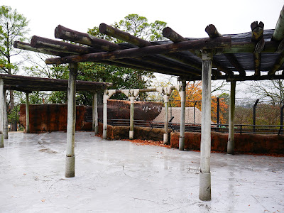 The Zoo is home to a trio of female Malayan Tigers (Zeya, Sundari, and Kae) and is clearly set up to accommodate breeding. On this rainy day two were together in a larger habitat, and one in the adjacent space, very much interested in joining the other two, one of whom hung out at the fence line dividing them. Cat socialization can be tricky, so I'm sure there was a good reason to separate them on this drizzly Christmas Eve.