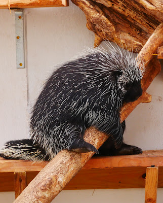When you look at the zoo over all, you basically have six relatively small focus areas: 1) Giraffe, Zebra & Collard Peccary, 2) The Trail of the Jaguar with a one room aviary abutting it, 3) Small animal house with Red Panda's attached (10 habitats in the building, one way in one way out), 4) A U-Shaped set of outdoor habitats with an elevated boardwalk (one way in one way out) Includes: North American River Otter, Noother American Porcupine (They are obsessed with this species--should be the zoo's mascot), Patagonia Cava, American Alligator, 5) Farm yard (small), a donkey and a couple of goats, a few chickens in a coop, and 6) the last third of the zoo has two habits; one with an older females Elk and the other with an old bull American Bison. This is where the new Asian habitats are slated to go. A keeper confided to me that the animals are too old to relocate and so they're just being maintained awaiting the ground breaking for the Asian habitats. And then there are playgrounds and splash pads and little rides for younger children to play on.